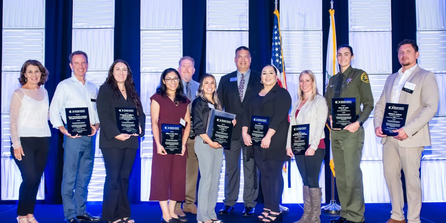 IRVINE, CA (September 13, 2023) — Nearly 200 community and business leaders gathered at the 2023 First Responders Dinner hosted by Orange County Business Council on September 12th. The inaugural event in Anaheim recognized nine first responder organizations in law enforcement, fire and health care that protect and serve the businesses, residents and visitors of Orange County. Their commitment makes it possible for Orange County to be an economic leader in the state and the nation’s sixth largest county. Presenters also acknowledged the 22nd anniversary of 9-11 and the recent response to the shooting at Cook’s Corner in Trabuco Canyon.